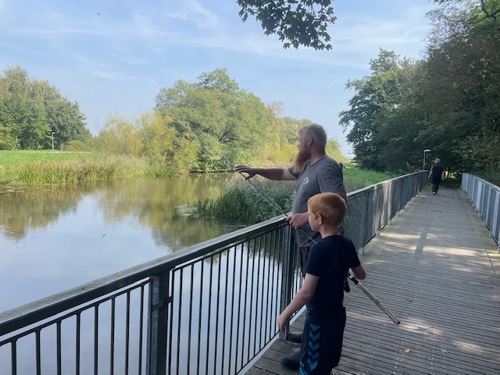 Årets familiedag ved Vidåen havde modsat sidste år et fint deltagertal. Det fine og varme solskinsvejr var ikke det allerbedste fiskevejr, men alligevel troppede omkring 25 store og små fiskere op ved Vidåen ved Provst Petersensvej i løbet af formiddagen, hvor man hyggede sig med fiskestangen. Fisk blev der også fanget, både gedder, aborrer, skaller og rimter i mindre størrelser, som efter en kort fotoseance blev genudsat i deres rette element.
